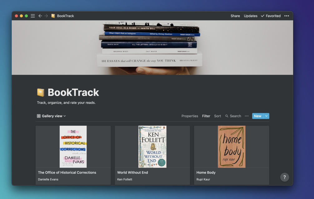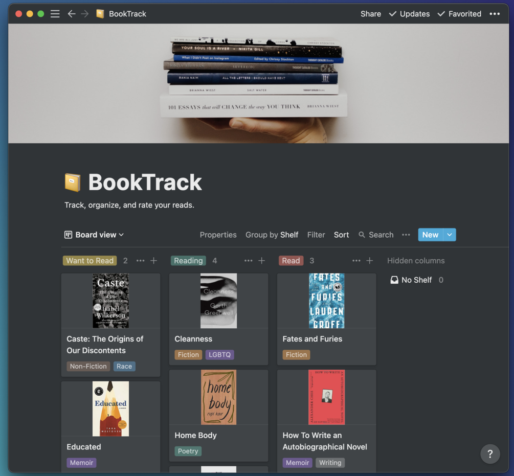 A simple, easy-to-use Notion template that allows you to track, organize, and rate your reads.